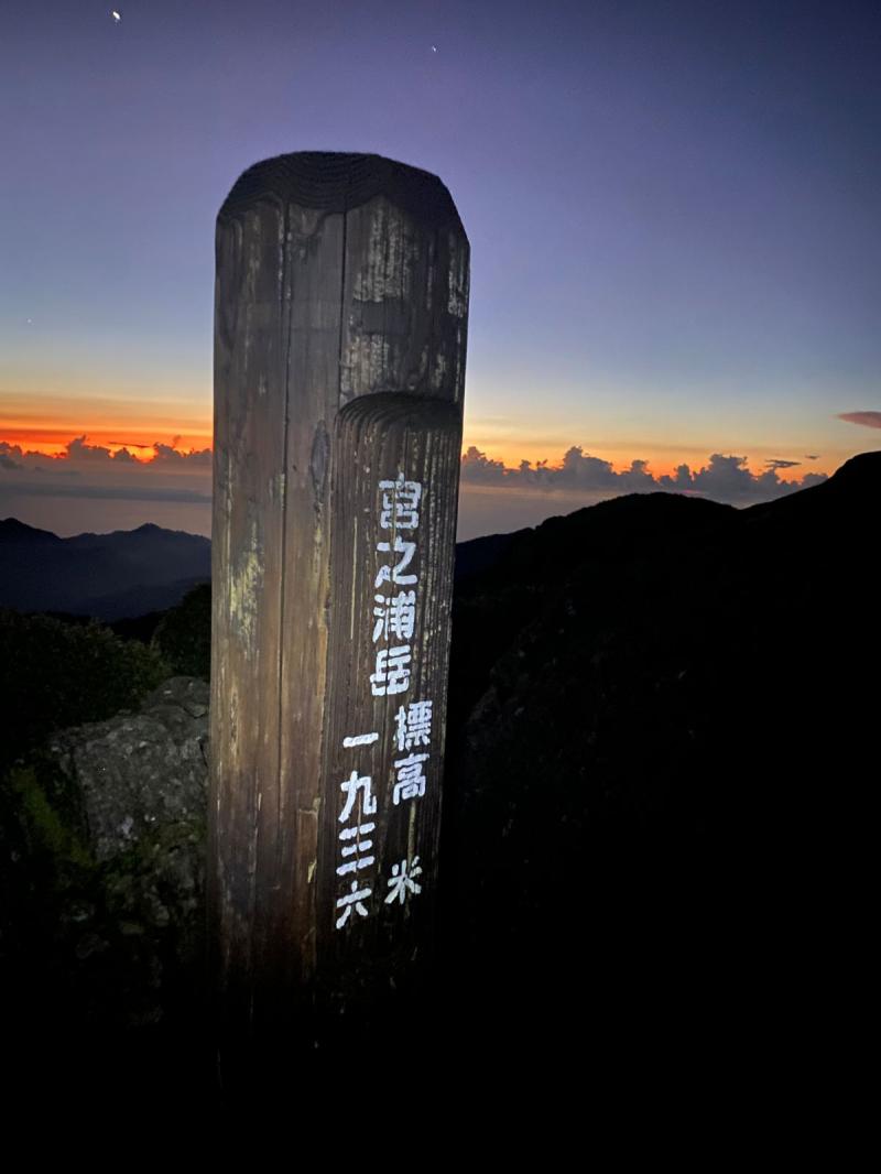 翁岳を通りすぎたあたりで先行して歩いていた今村さんに追いつき、宮之浦岳まで同行して明け方の空を一緒に堪能。
