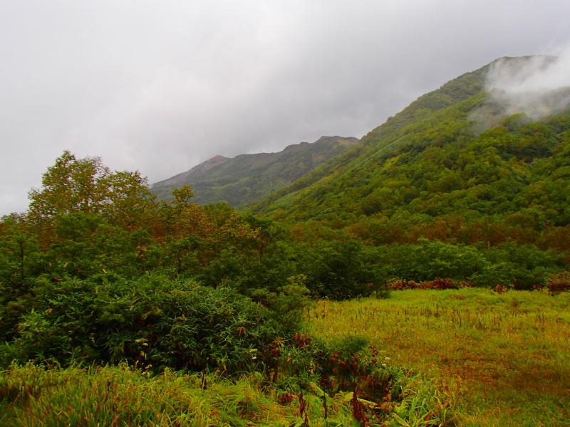 天気は雨が降ったり止んだり。おかげでゴアテックスのレインウェアーの機能を体感しながらの登山ができました。樹林帯を登ると景色が開けで天狗原に到着です。