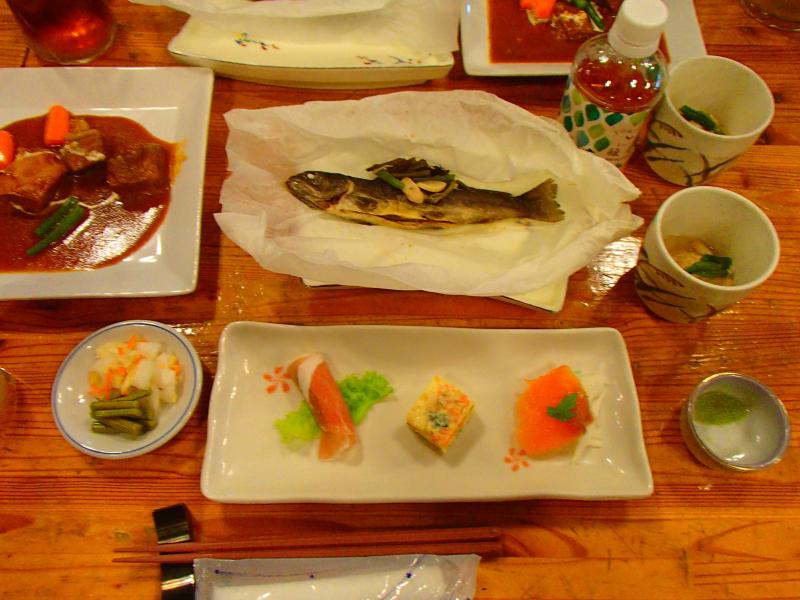 散策後はお風呂に入り、夕飯をいただきました。手づくりのビーフシチューやつくね、岩魚などボリューム満点の夕飯に大満足でした。
