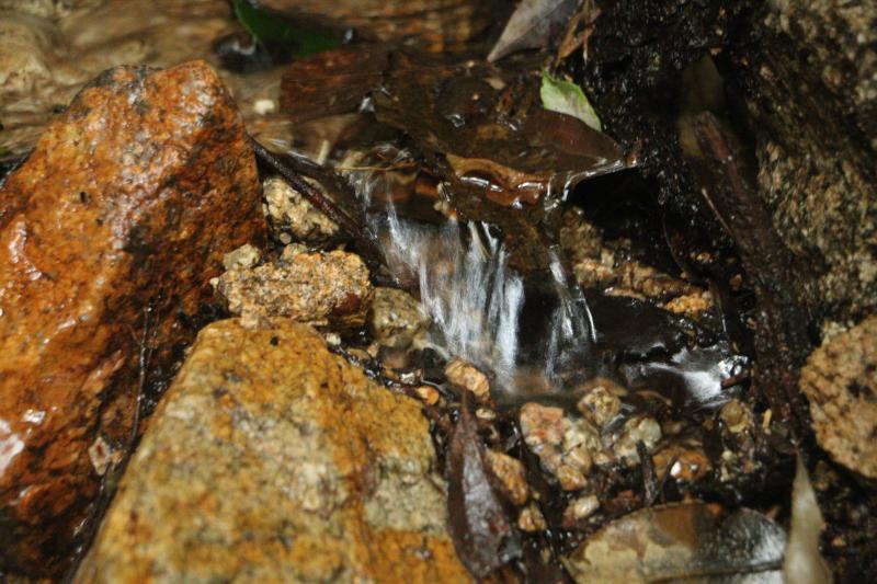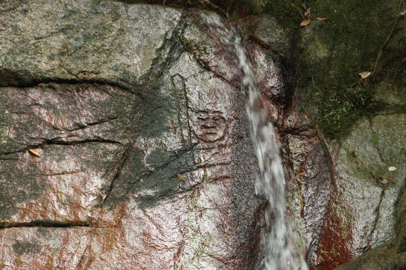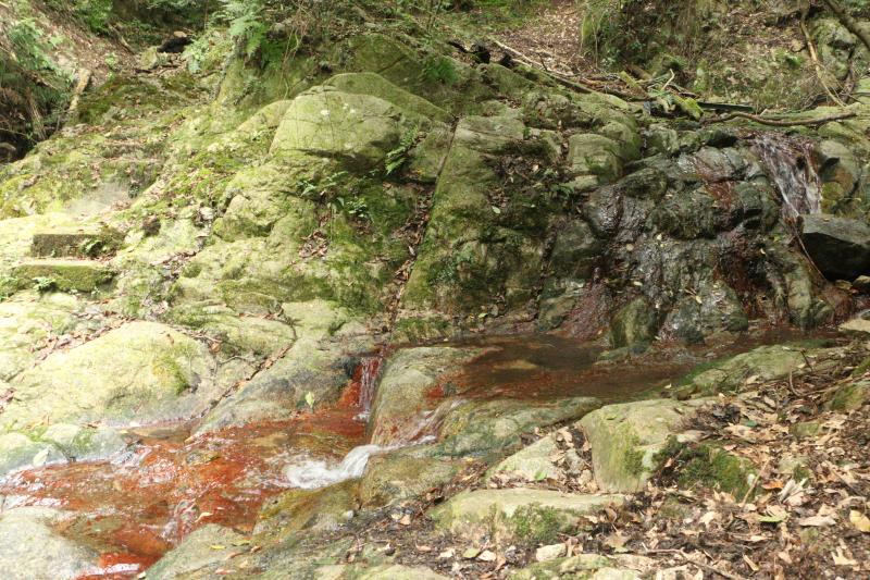 花崗岩が長年の風化で「マサ」となり、さらに「鉄分」が酸化して赤みを帯び、石や川底が赤く見えます。