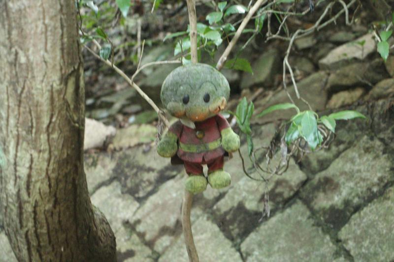 ガレを抜けた堰堤途中にアンパンマンが掛かっていて