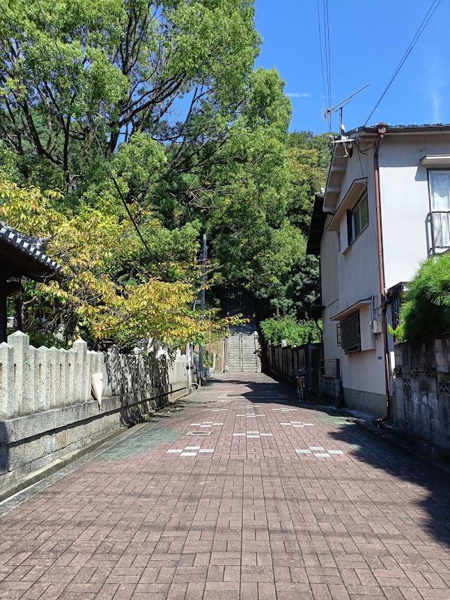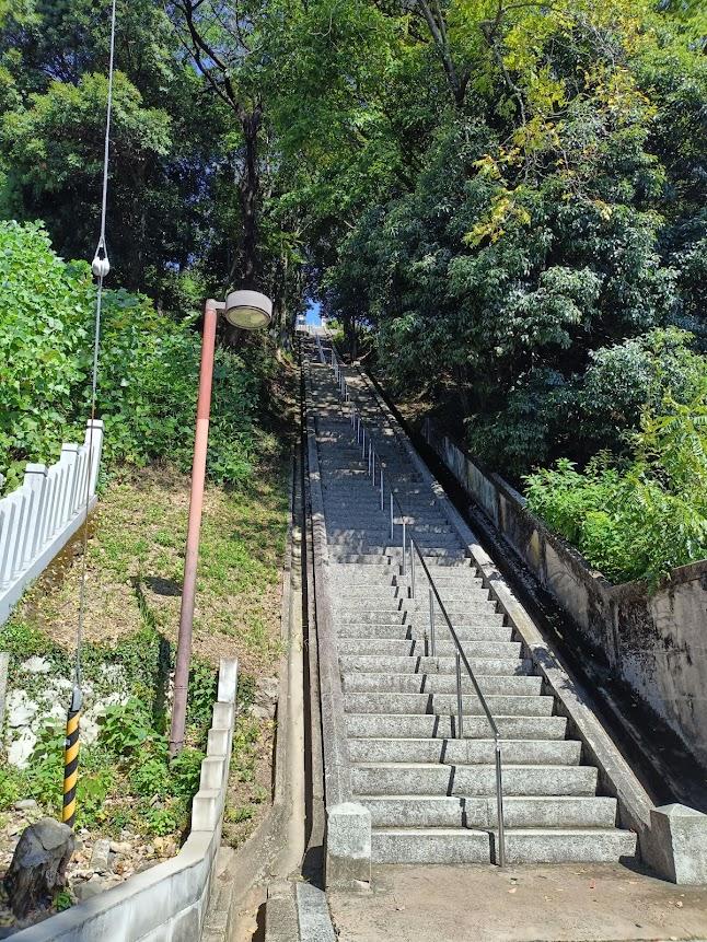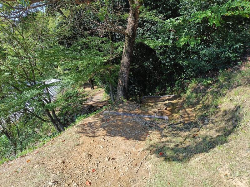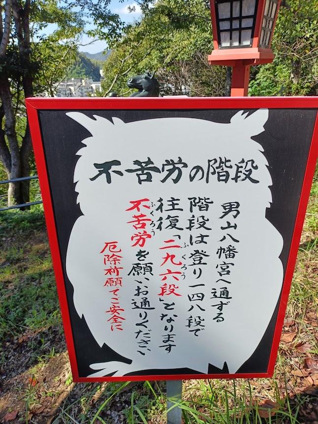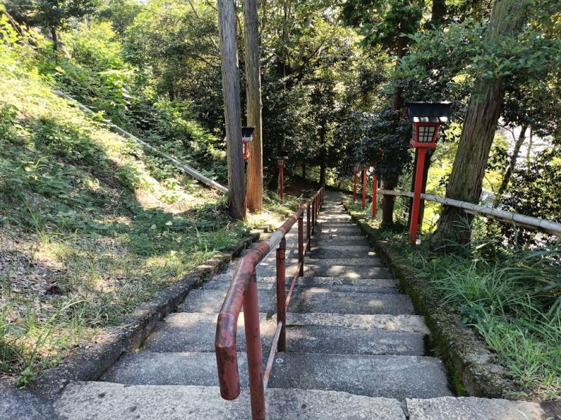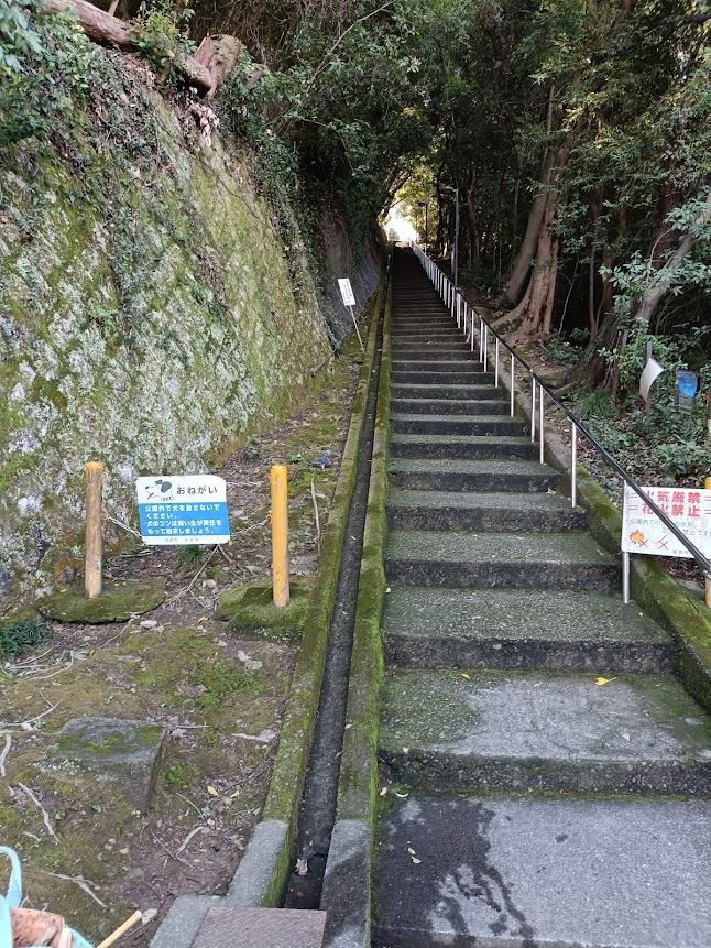 男山はいくつか登り口がありますが、今回は裏の階段から。日陰で凉しいですが傾斜が急です。