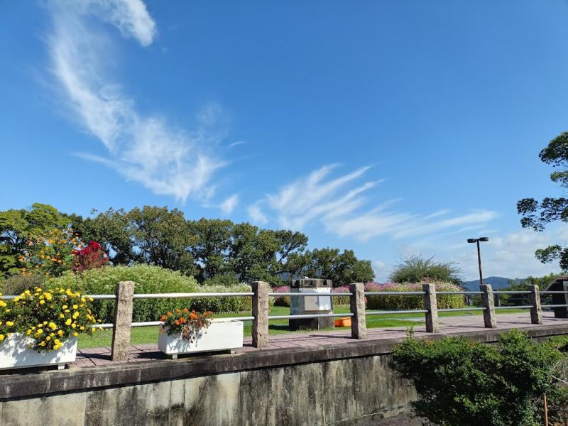 山頂は綺麗に管理されており、花を見ながら姫路城を眺めることができます。