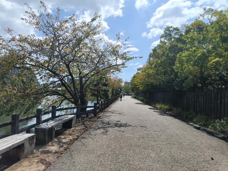 男山は姫路城西側にあります。駅から最短経路で行けばすぐなのですが、せっかくなので姫路城のお掘りを周回して歩きます。紅葉はまだまだですが、落ち葉やドングリは少しずつ増えてきています。