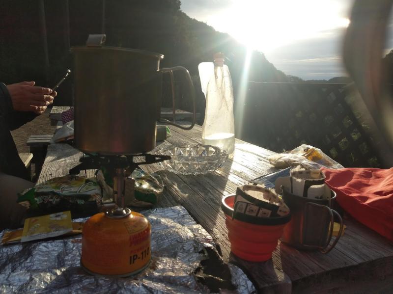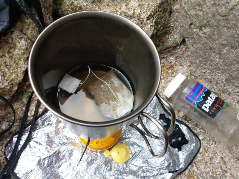 バーナーでお湯を作り、しょうが紅茶を頂き温まりました。