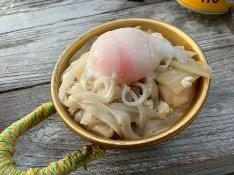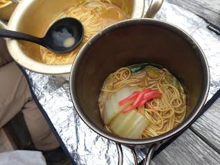 下山後 日向小屋でラーメンを作り(熊本もっこすラーメン)こちらは友人の持ってきていただいたもの、とても温まりました。