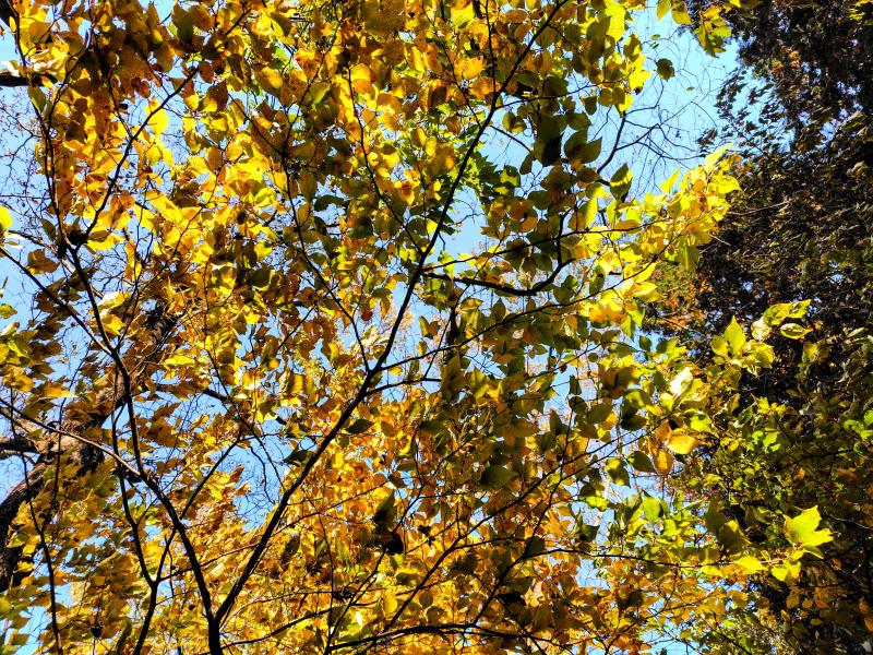 バイやカツラなどの黄葉と合わさって、艶や