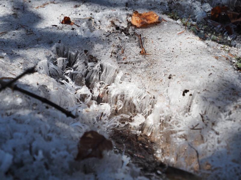 ・峰ノ大池に降りる道は苔の生えた岩が多く、この日は雪と溶けた霜でとても滑りました。