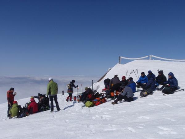 冬の大山は、なかなか天気に恵まれませんが、今回はとても天気が良く気持のよい登山ができました。トレースがしっかり付いていたので、そこを伝って歩けば特に危険な箇所はなく歩けました。例年より雪が多く、6合目避難小屋は登りは気付かず通過していました。山頂の小屋も埋まっており、入口が入れるように掘ってありました。最近は韓国の方がツアーで来る事が多いらしく、この日も韓国の方がたくさん登っておられました。雪が多かったので、大山は雪山がまだまだ楽しめそうです。