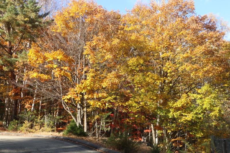林道に下ると雪はなくなり、カラマツ の紅葉が素晴らしかったです。