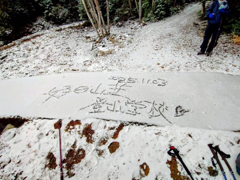 金峰小屋にてチェーンスパイクとアイゼンを装着致しました。