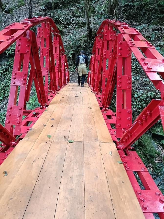 - 橋の上はストックの先ゴムも滑りやすいです。水を渡る所も数か所あります。