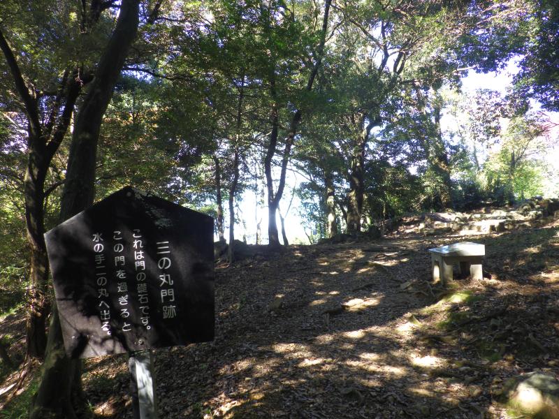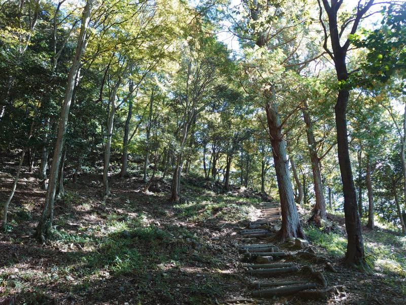 ⑥駐車場先で本丸への登山道があり、ここからは遺構巡りになります。なお、先に物見櫓の展望所に行くと良いです