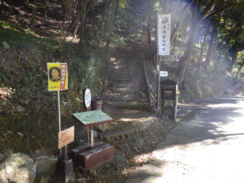 - 第一駐車場(2分)大手道分岐(8分)出丸(12分)金山城跡(15分)米蔵跡(6分)可児市観光交流館(10分)第一駐車場