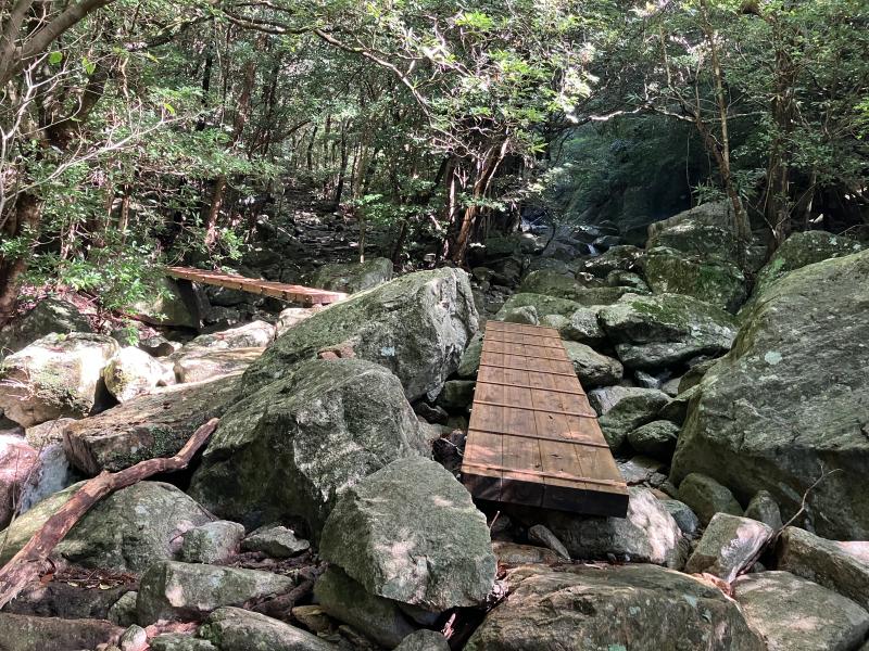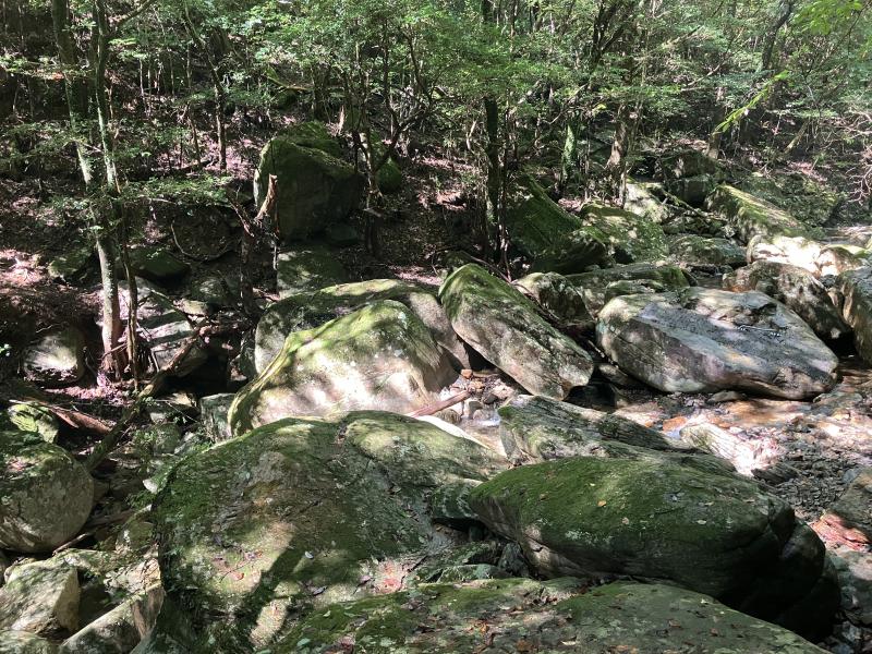途中には渡渉ポイントもあり、こちらも雨後で水量が多め。慎重な足運びが必要でしたが、岩を選んで渡る感じがちょっとしたアスレチックのようで楽しい時間でした。
