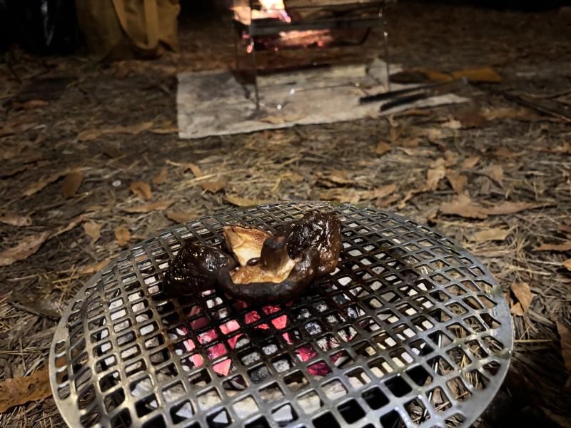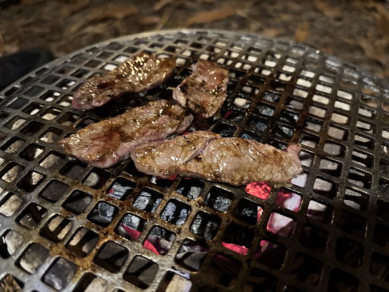 焼肉(たくさん)と肉厚しいたけと焼鳥とチーズ焼。