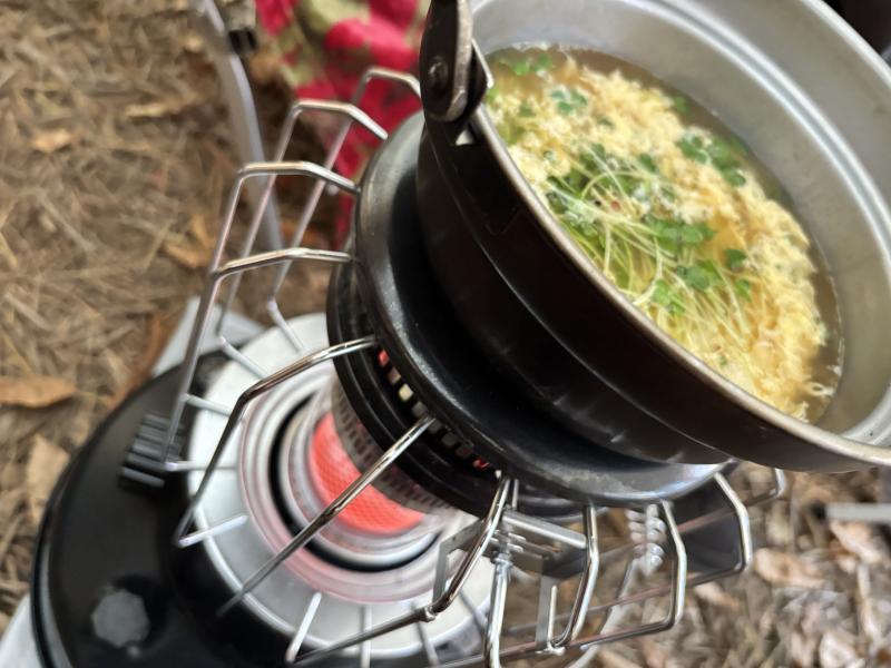 朝ごはんは、卵スープとホットサンドとコーヒー。