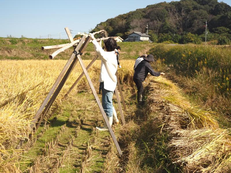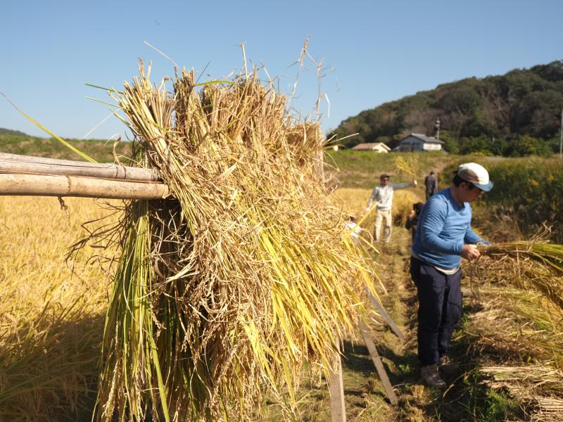 想定上に刈り取り作業がはかどったため(笑)、刈り取った後に束にして、木にかける作業は急遽、枠を増やして対応してくださいました。