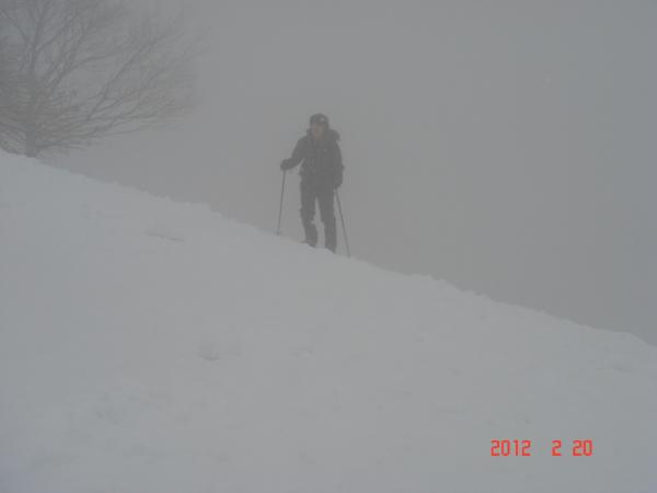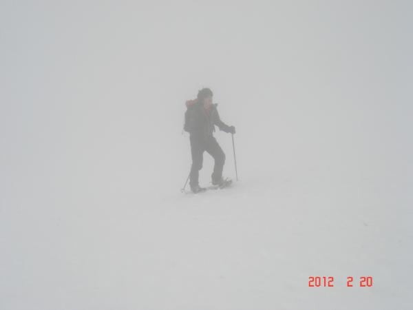 午前中は曇りで霧が出ていたので、ホワイトアウトになり、しばしばGPSがないと進む方向がわからなくなりました。