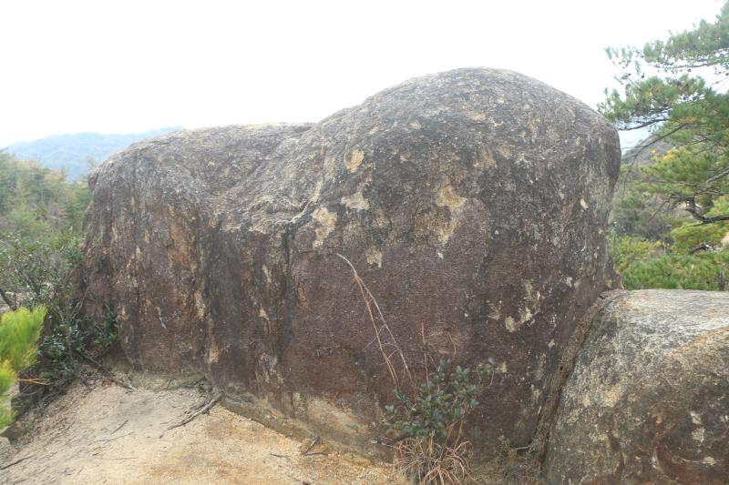 石灰岩、チャートの中に花崗岩などが含まれている珍しい岩です。