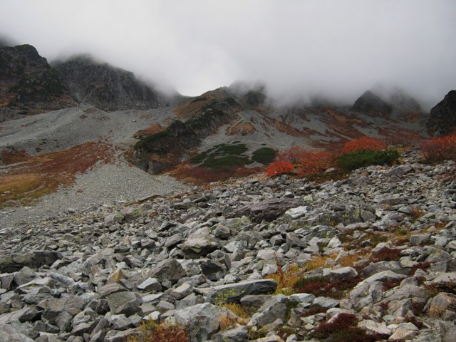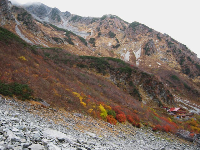 紅葉は屏風岩下の標高まで降りてきていた。涸沢の紅葉のピークは過ぎていた。20日は奥穂まで登ろうと思っていたが、山頂はガスがかかっていたし かなり寒かったので 穂高岳山荘までとした。雪は無かった。今回 スーパーフィートのグリーンを忘れてインソール無しで行ったが、特に上高地-横尾間の平地歩きでは フィット感が悪く疲れが増し ありがたみが良くわかった。