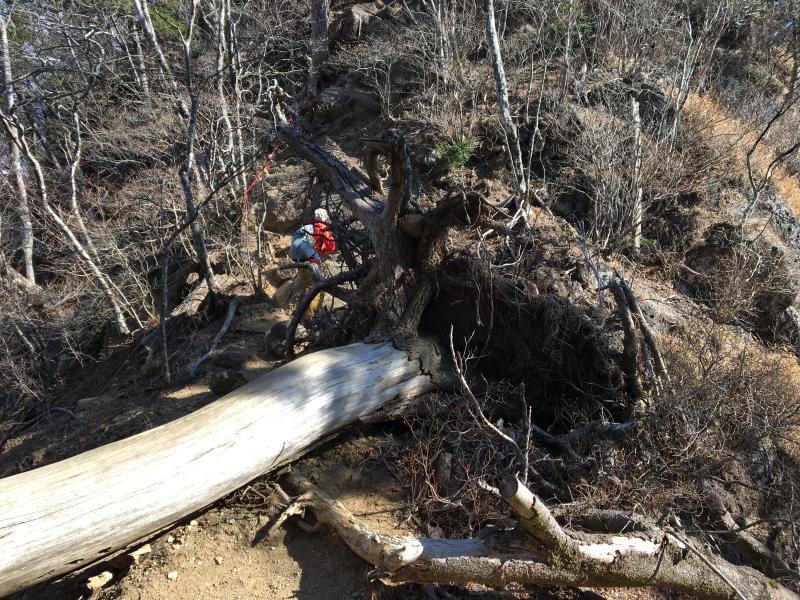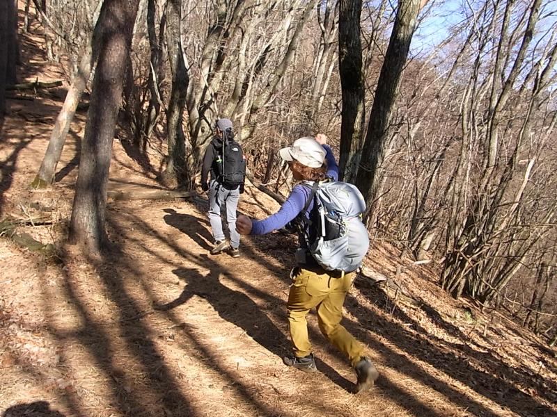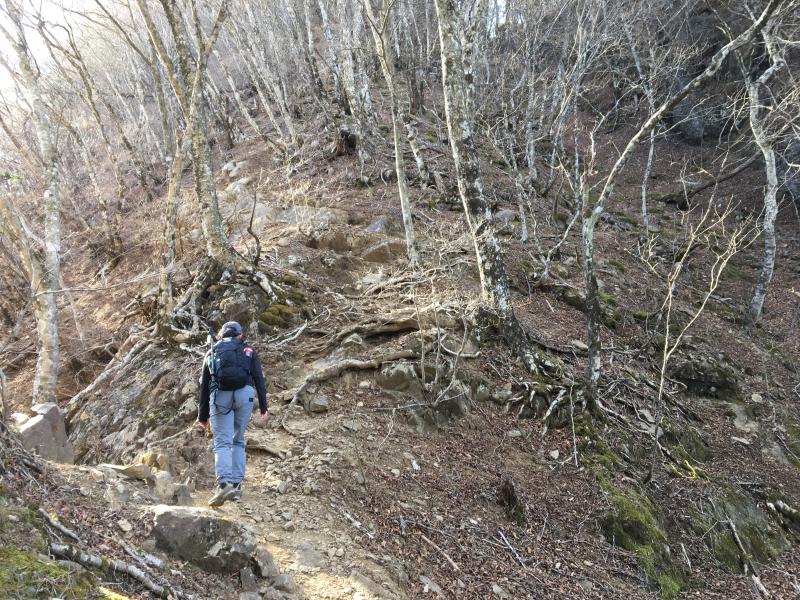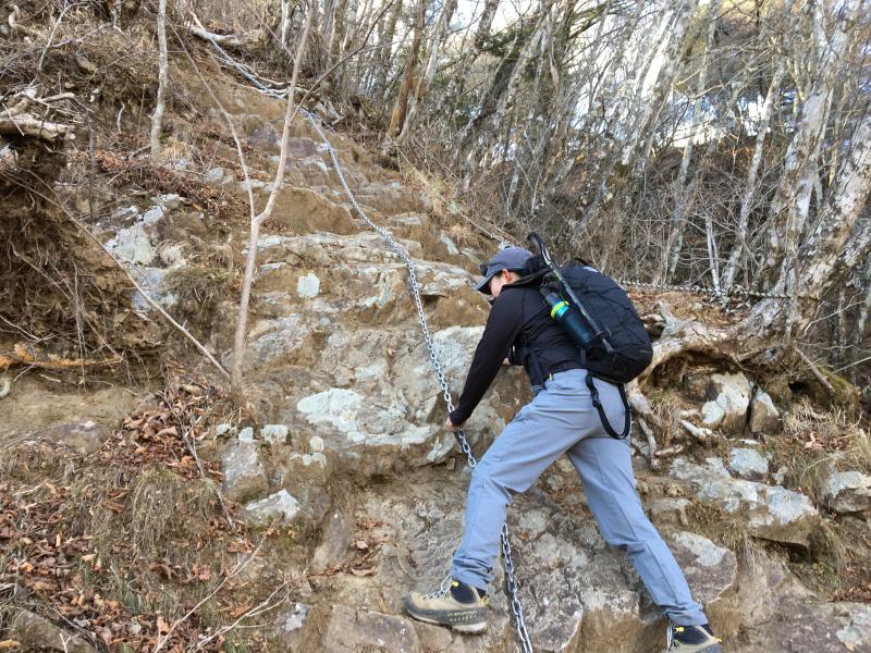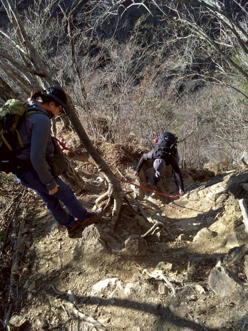 この時期は落ち葉で滑りやすいので特に下りには気をつけて歩いたほうがいいです。丹沢の三峰山のような2000m未満の岩場ルートとしては起伏に富んでいておもしろく、飽きのこない山なのでコースを変えて登っても楽しめると思います。