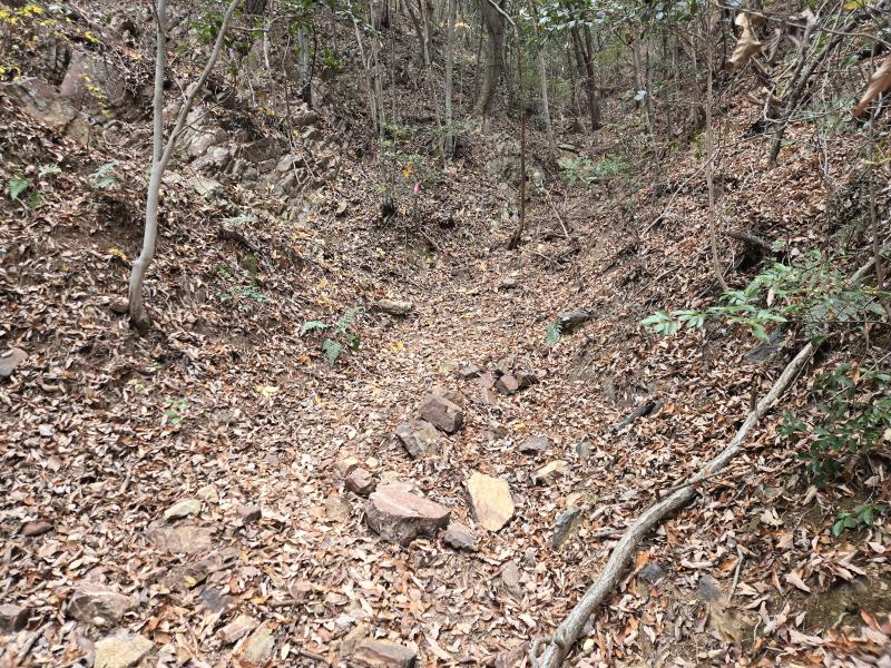 迫間山までは細い道をトラバース。ちょっとした岩場もあったので注意