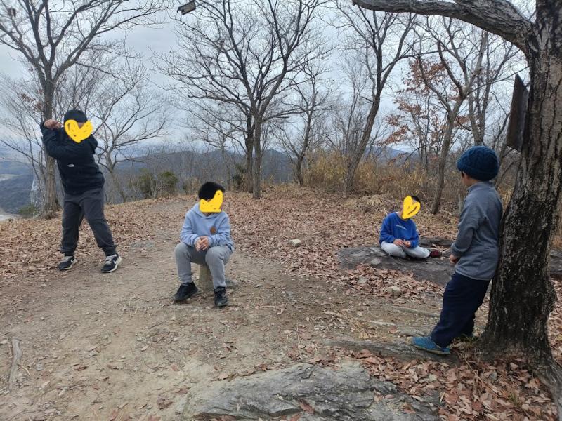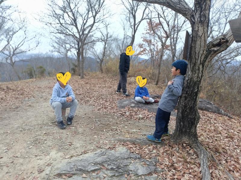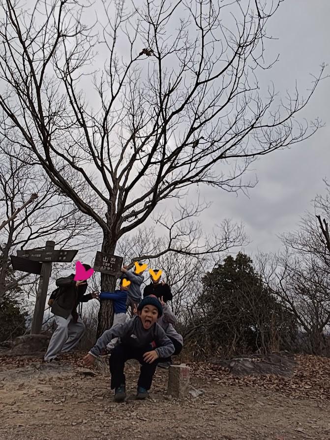 年始の登山は山納めで登った小野アルプスの展望台。同じく息子の同級生に新たにお友達とお母さんも加わりました。