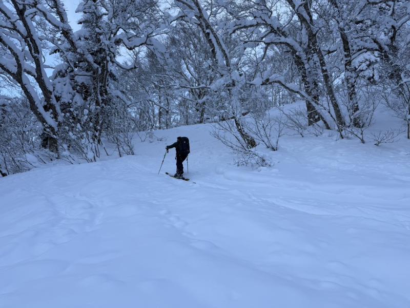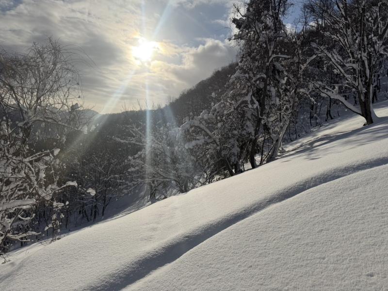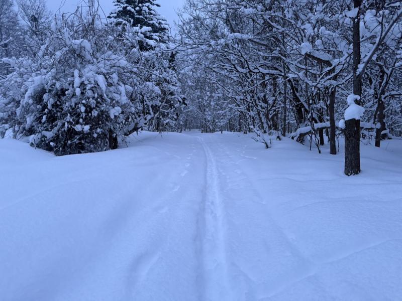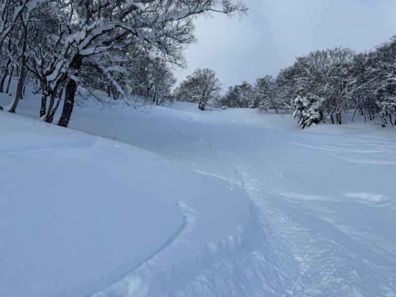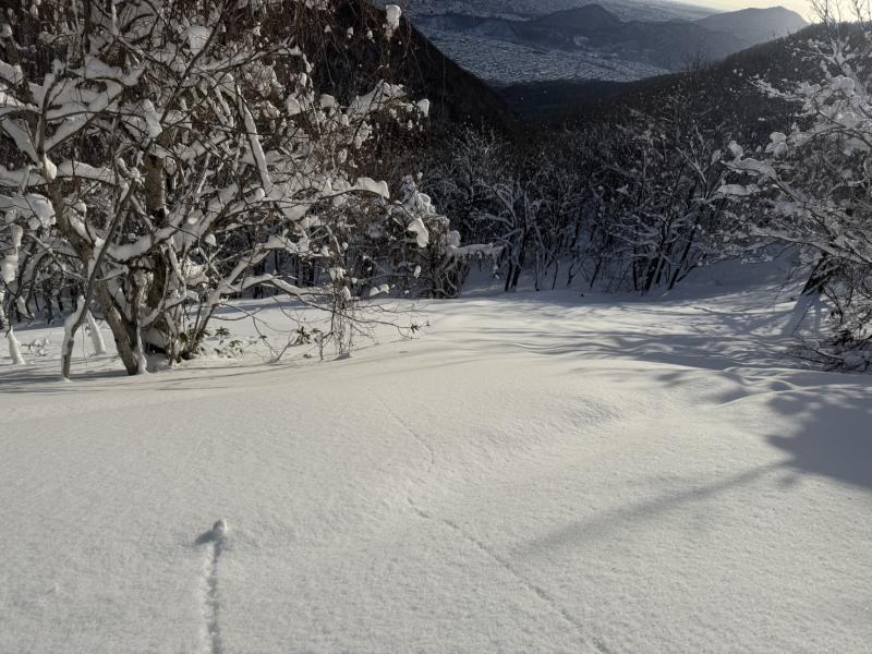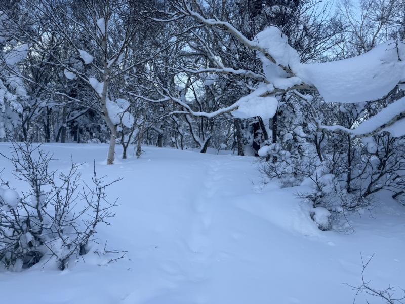 今年は雪が少なく、まだラッセル筋が出来ていないので、
