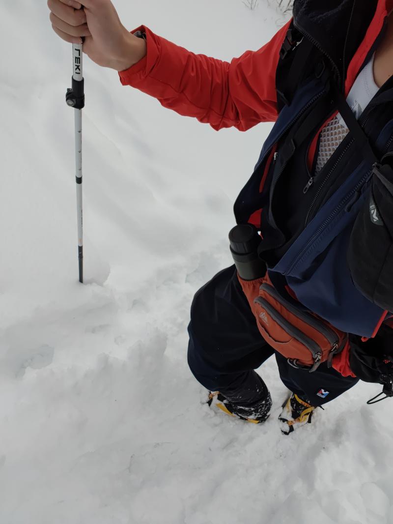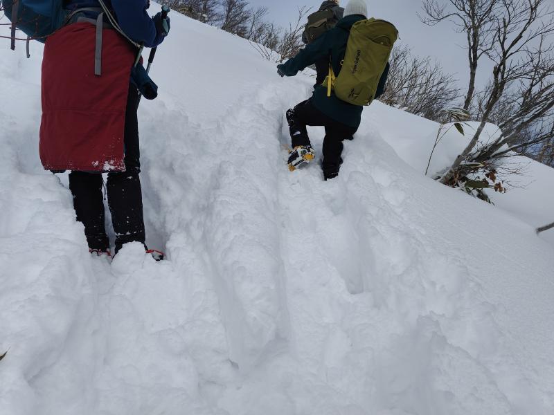 のはずだが、ふわふわの雪質でアイゼンで踏む度に沈んて行く、
