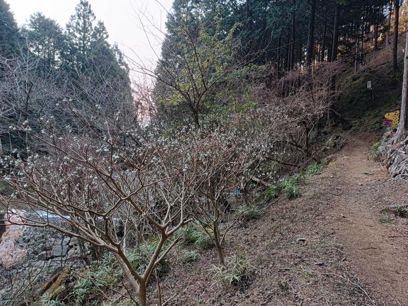 とても歩きやすい道。登山口近くから髭僧の滝分岐辺りまでミツマタが多い。蕾が育ち始めている。この日は、ヤビツ峠までバスは上がっていたようだがこの先、凍結で蓑毛止まりになる可能性も視野に入れてください。