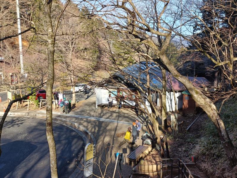 冬の間は、ヤビツ峠まで凍結でバスが上がらないことも多いので少し早めのバスで移動し蓑毛から歩き出しました。歩きやすい柏木林道を上がっていき1時間ほどでヤビツ峠に到着。ちょっと前にヤビツ峠便が到着したようで平日ですが数組登山者がいました。今回は、車道周りではなく塔の台経由で表尾根に入山。塔の台コースは明瞭な歩きやすい道で初めての人、子ども連れでも楽しめそうな道でした。