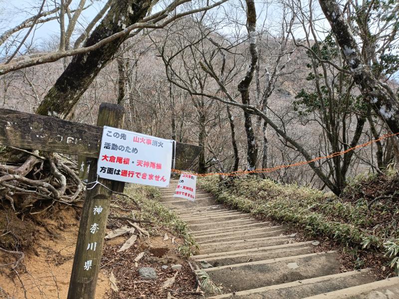 火災による通行止めの為、大倉尾根を迂回。
