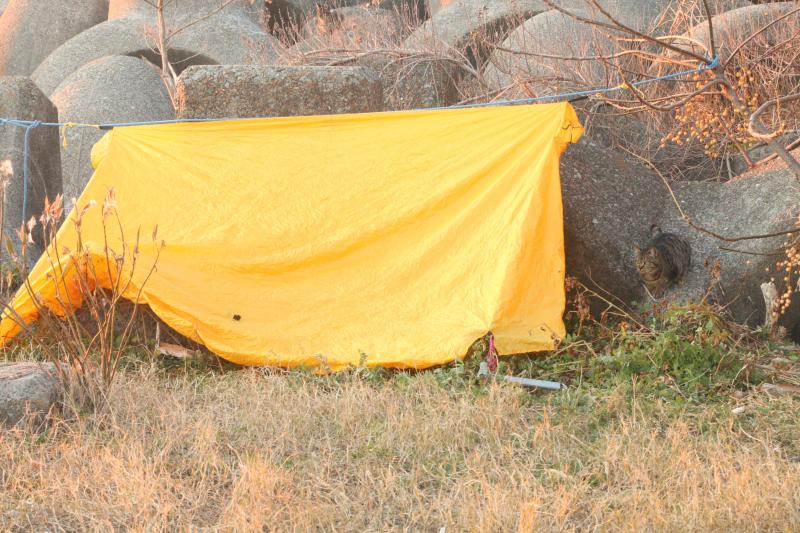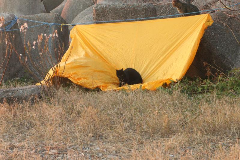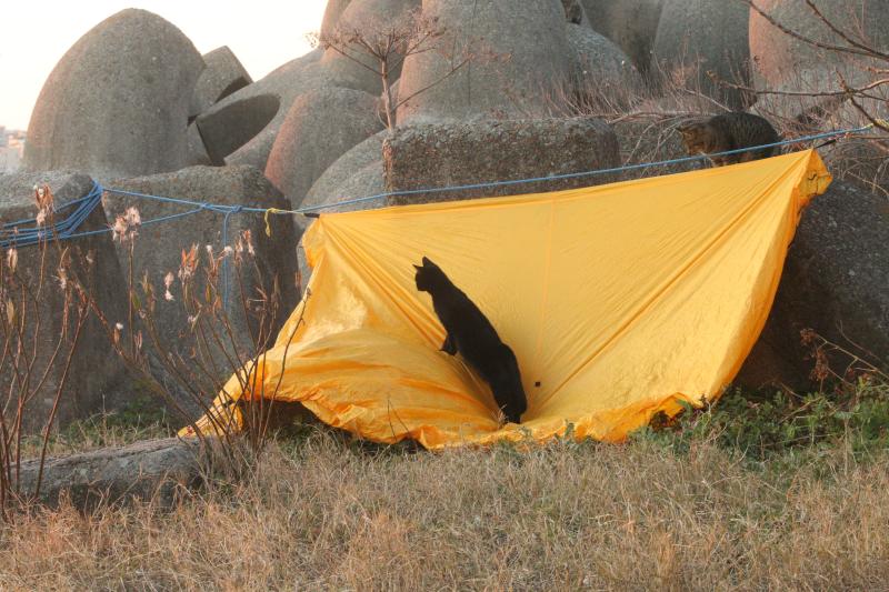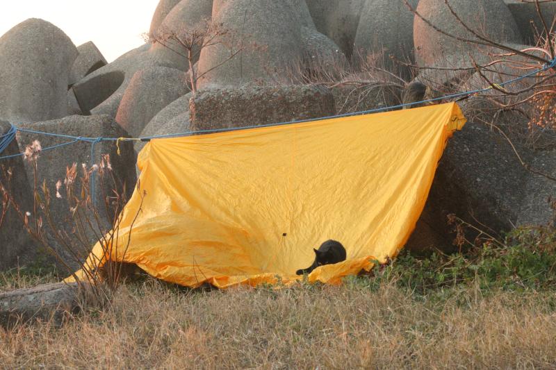 達磨夕日と猫と竹ペグにてツエルト設営 (神戸市)