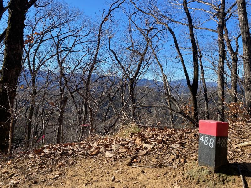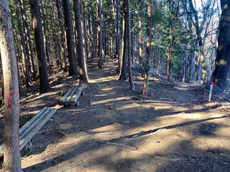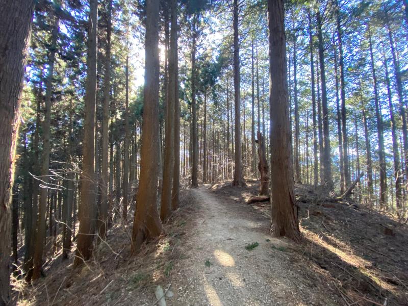 山頂以外は基本的に樹林帯ですが、時折木々の隙間から富士山が見えて気持ちも高ぶります。真冬ですが日向は暖かく、登ると体も温まりさほど寒さは感じませんでした。
