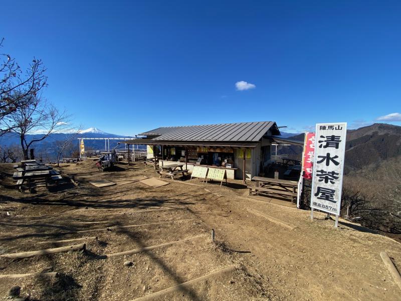 清水茶屋では目の前に富士山を仰ぎながら、名物の「陣馬そば」が頂け、