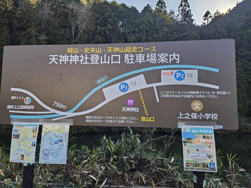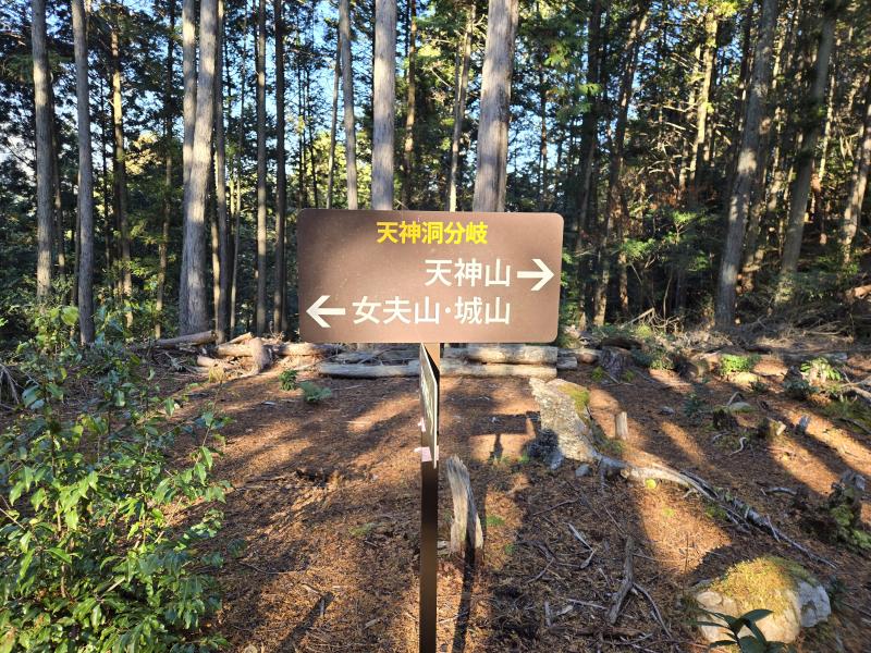 - 駐車場⇒15分⇒天神山⇒10分⇒女夫山⇒10分⇒松本峠⇒30分⇒城山⇒1時間⇒駐車場