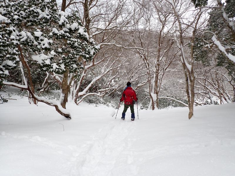 裏愛宕の地蔵山方面は雪が深いので、ワカンやスノーシューがあると快適。