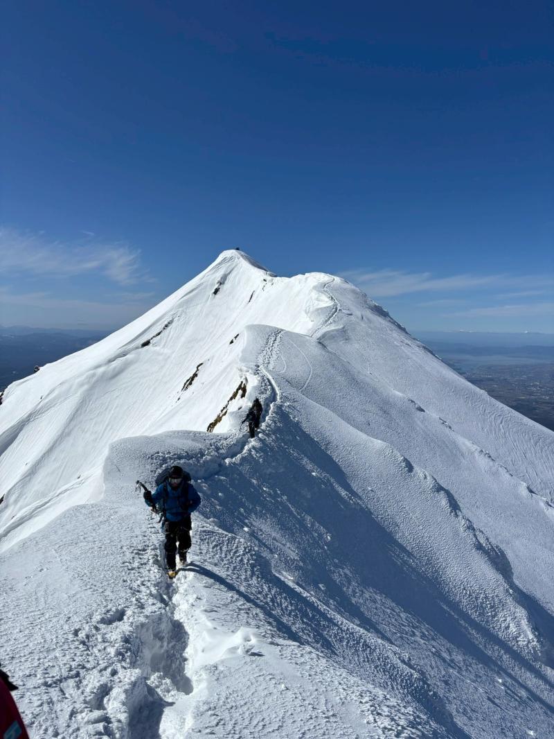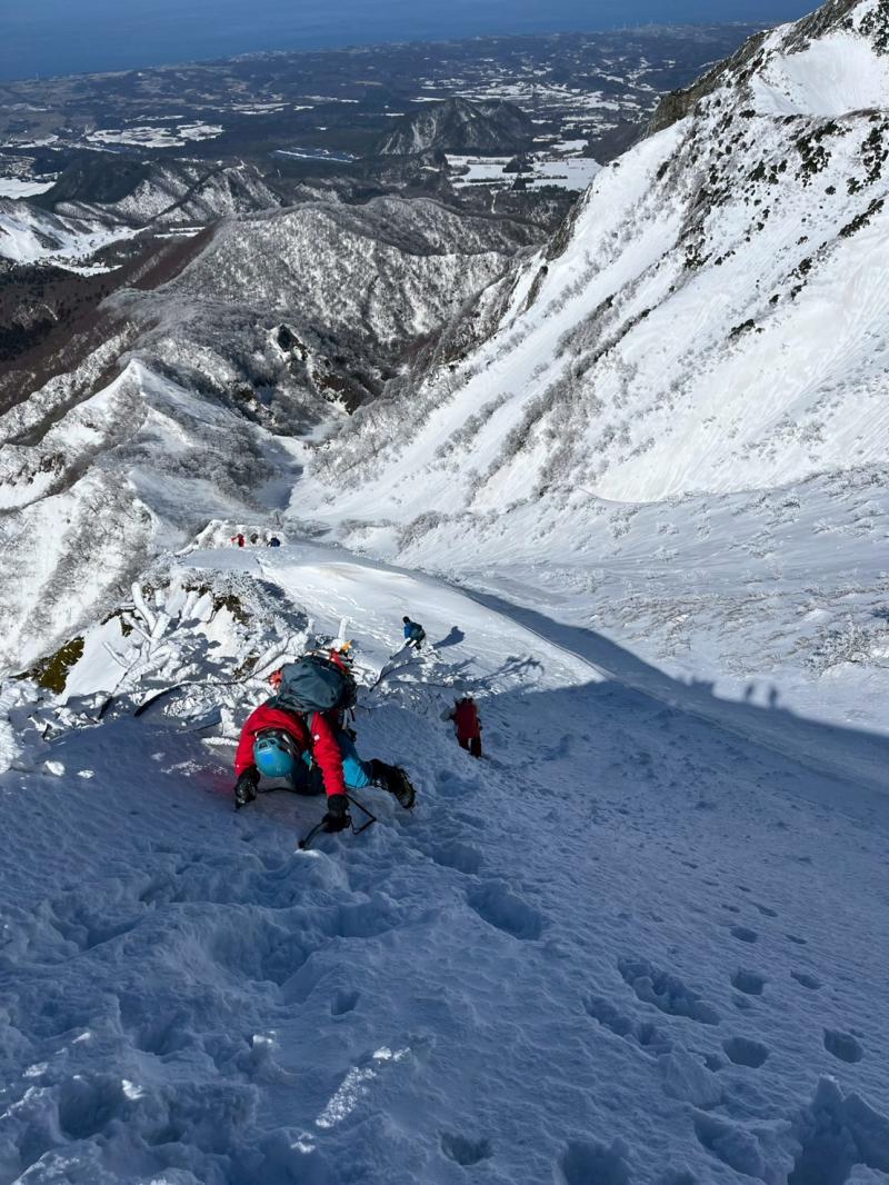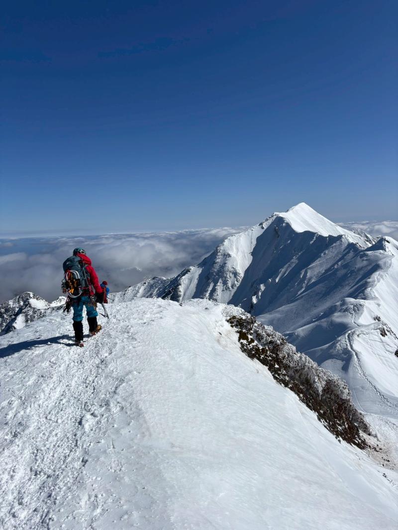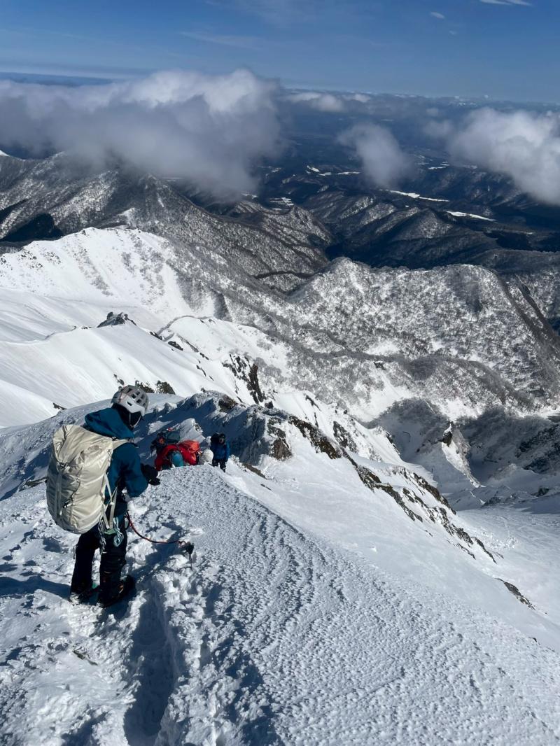 - 前日の冬型により、北壁東陵は最高のコンデイションでした。一方の滝沢リッジはごっそり雪が落ちて苦戦しておりました。三日前には緩みすぎて滑落事故数件ありました。
