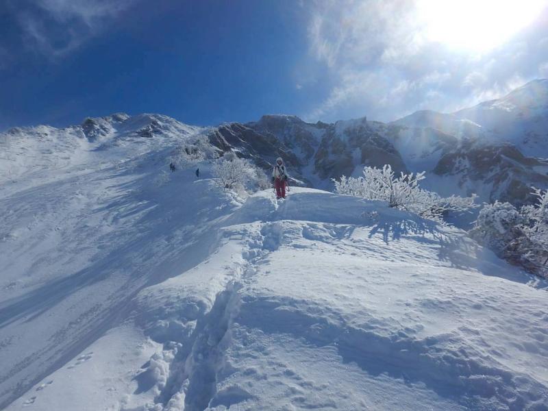 稜線は穴ぼこもでてきていて、来週の暖かさでは厳しくなりそうです。