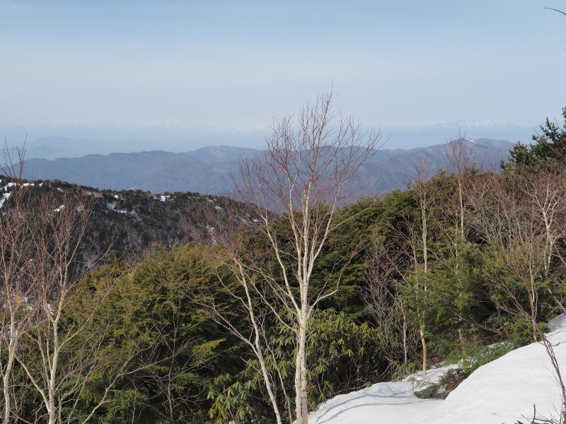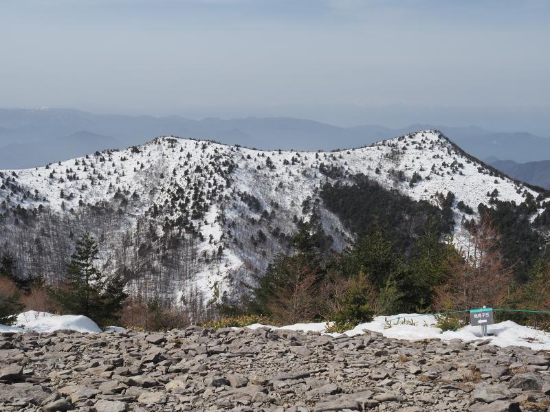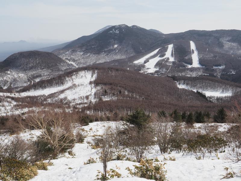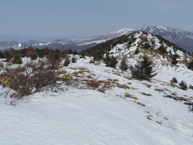 山頂部は雪なし。風はそれなりにありますが気温が低くないので意外とゆっくりできそうな気候です。東西篭ノ登山の奥に浅間山も見えていますが上部は雪が少ないですね。根子岳、四阿山はまだまだ雪はありそうです。