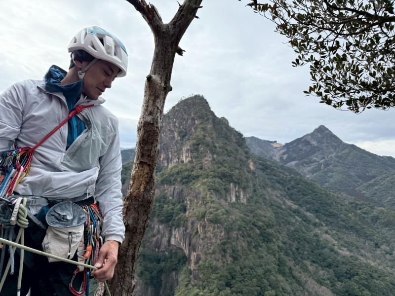 終始曇っていたので登攀中はダウンジャケット以外を全てを着てちょうどよく、ビレイ中は寒いのでダウンJKTを着ました。