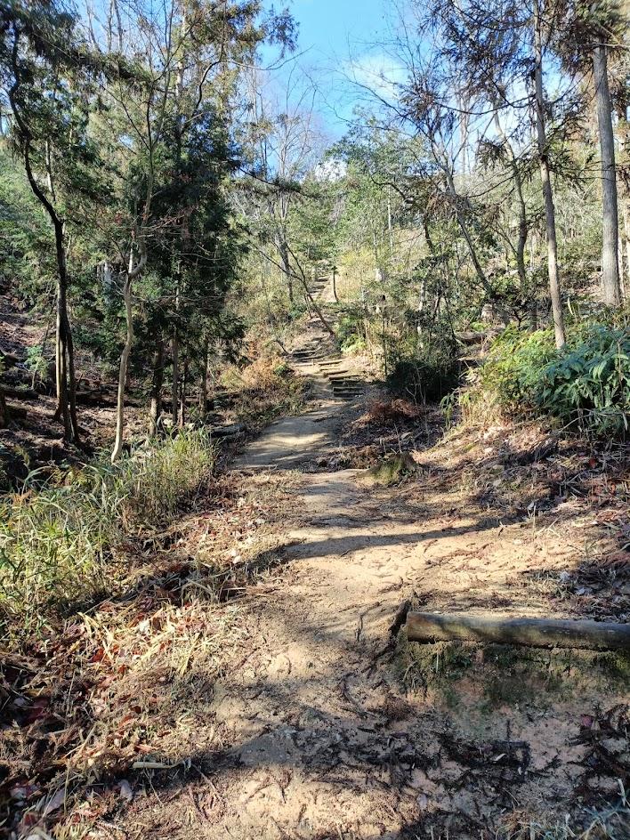 道はしっかりわかりやすいのですが、段差がバラバラの山階段。木の根っこが滑りやすかったり、ささえに持ちたい木はあるけれど距離があったり。是非ストック持参してください(今日忘れて…)