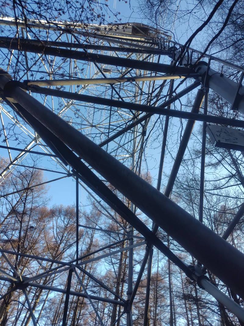 アイゼンも途中でかたずけ、何とかはまらないように進みます。行きしなに苦労した1955mピークからはこれでもかというほど長い長い下り。最初の送電線直下まで下ると、ようやく目途がつく。