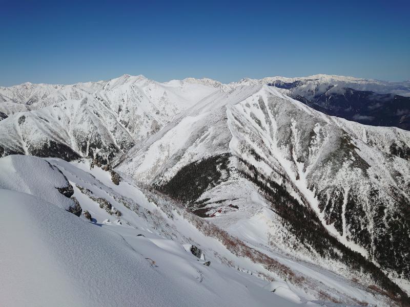 ⑭アルプス主稜線まで見ると槍の展望があります