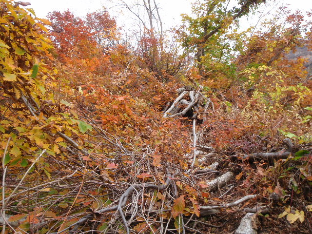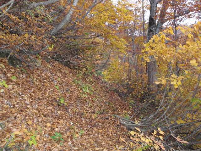 - 杉野沢橋6:00--金山谷6:35--地獄谷7:00--富士見峠9:00--T字路9:10--(昼食25M)--山頂10:35/10:55--富士見峠11:40--(きのこ取り15M)--杉野沢橋14:20