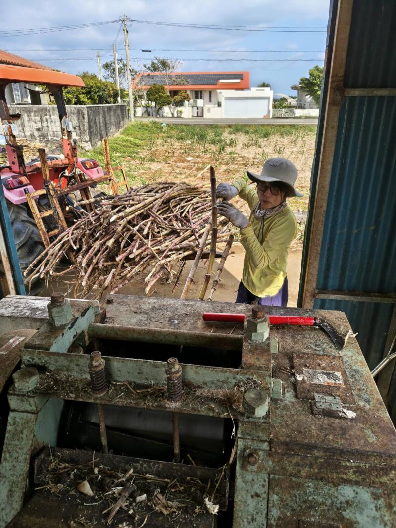 まずはサトウキビの皮むきから畑に入ります。島の方と一緒にさせていただきました。
