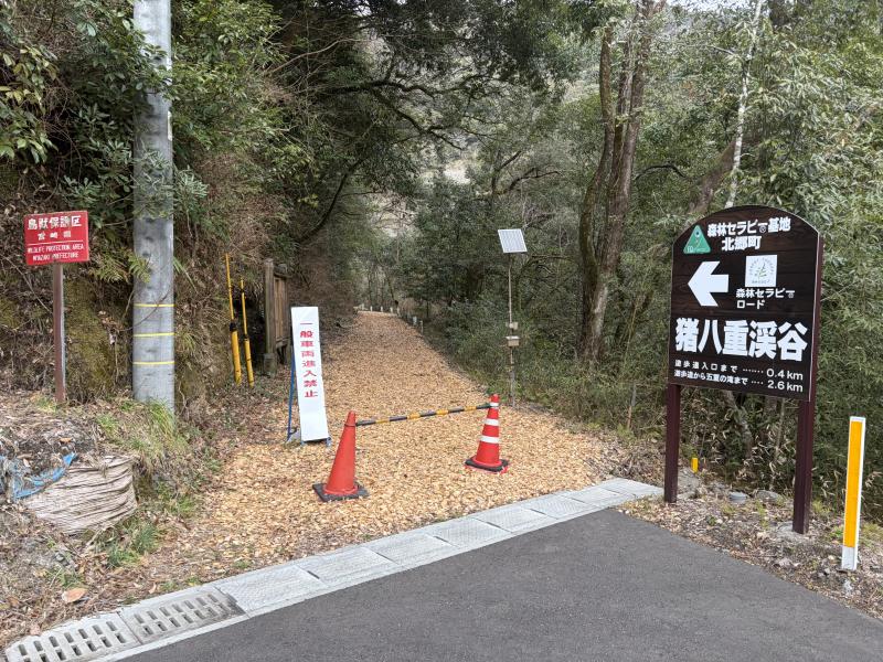 渓谷手前にある猪八重足湯に立ち寄ろうとするも、営業は10時からで今回は断念。少し残念でしたが、そのまま渓谷へ向かいます。