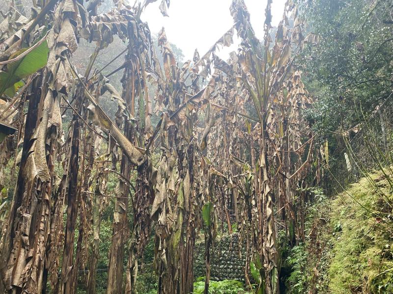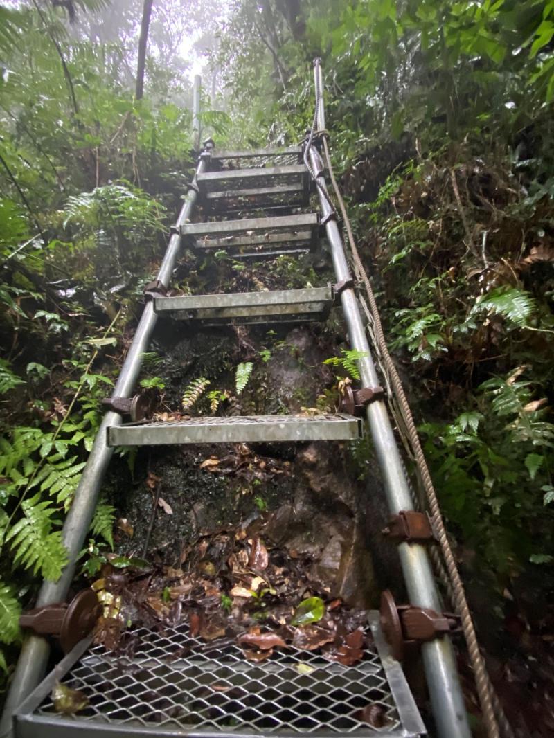 ロープの張られた箇所もある急な斜面を一気に下っていきます。