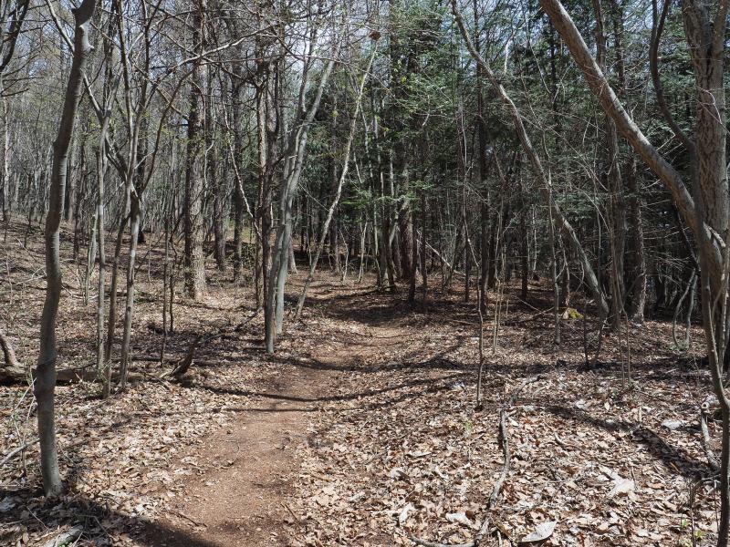 北上します。五里ヶ峯からの下り始めも急坂なので足元注意。少し下ったら緩やかになって走りやすそうな道。今回は走れそうなところは走るスタイル。五里ヶ峯の北側には山本勘助の軍勢が歩いた道「勘助道」と看板がありましたがよくわからず。。。新緑や花も出てきて気持ち良い気候です。多少のアップダウンはありますが下り基調でペースが上がります。日差しは暑く感じますが少し風もあり山を走るのが気持ち良いですね。